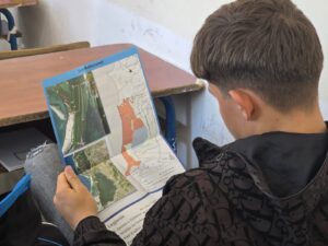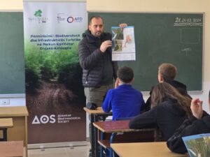 Orientimi për sinjalistikën me hartën përkatëse si dhe shënjimi i saj në terren nga vetë nxënësit me mjetet përkatëse, bojrat me ngjyrë të kuqe e të bardhë si dhe doreza u shoqërua dhe shpjegua duke shteruar cdo pyetje të nxënësve nga specialisti i AdZM Fier Ervin Allushi dhe kordinatori i projektit Shkëlqim Bylykbashi.